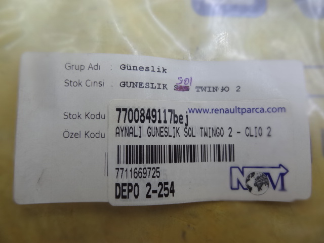 Aynalı Güneşlik Sol Twingo 2 - Clio 2 7700849117 Aynalı Güneşlik Sol Twingo 2 - Clio 2 7700849117 - web sitemizde ürünleri bulabilir, online sipariş verebilirsiniz. 7700849117bej
