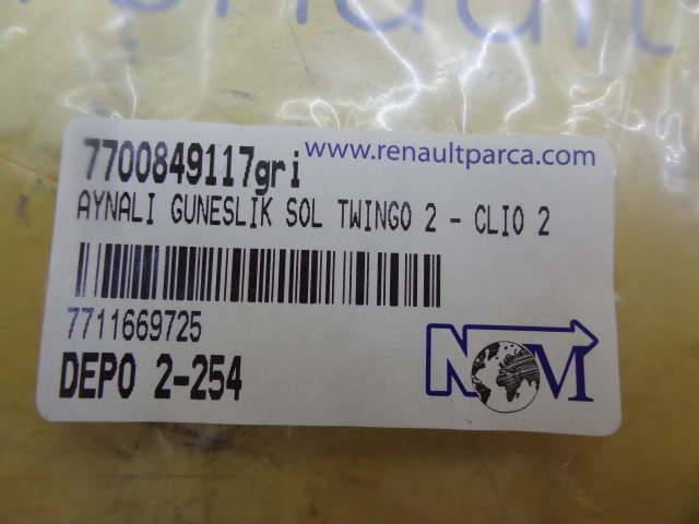 Aynalı Güneşlik Sol Twingo 2 - Clio 2 7700849117 Aynalı Güneşlik Sol Twingo 2 - Clio 2 7700849117 - web sitemizde ürünleri bulabilir, online sipariş verebilirsiniz. 7700849117gri